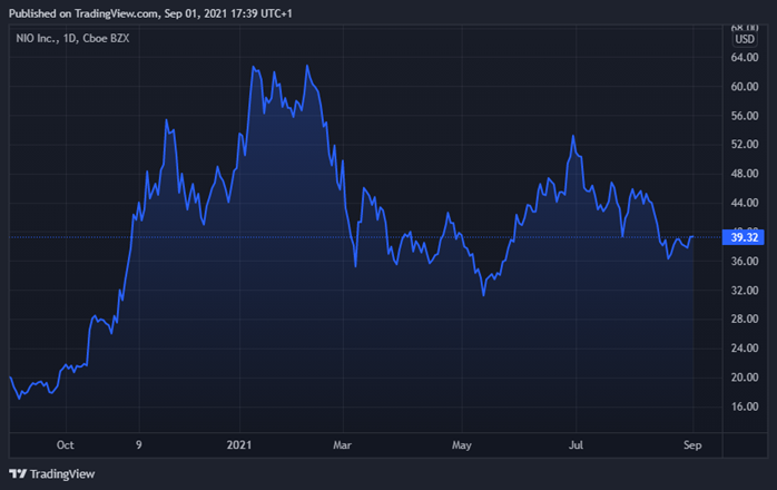 Share price of NIO was little changed during the trading day on Wednesday, trading at around $39 per share. The stock is up by around 95% in the past year.