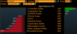 While major central banks have been cutting interest rates, the BoC has been reluctant to do so despite the global downturn because of the sound economic environment. The Canadian dollar has been on the rise and has retained the number 1 spot among the G10 currencies against the US dollar.