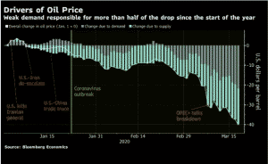 The oil market is facing both a demand and supply shock, simultaneously. In other words, there is a flood of supply at a moment of diminishing demand.