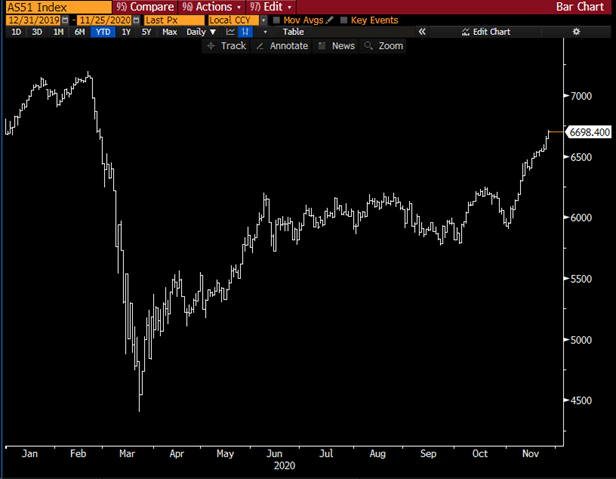 The Australian share market erased 2020 losses today following a strong performance on Wall Street on Tuesday which caused the blue-chip gauge to top 30,000 for the first time. Amid a series of recent positive vaccine updates, the US share market was buoyed by hopes that there is a less chance of a contested election: