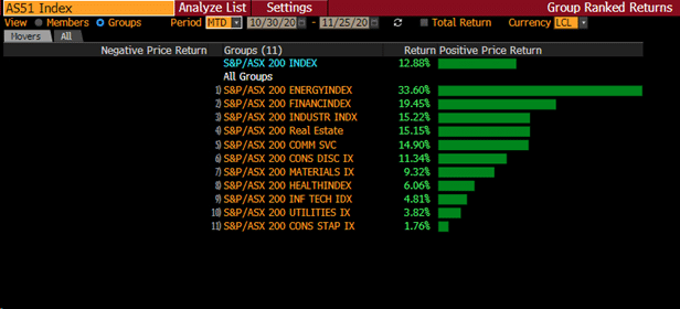 After the release of the Federal Budget, Australian shares started to decouple from US and European stocks as investors endorsed the government blitz which boosted confidence. During the month of November, the Australian share market has rallied significantly on the back of: