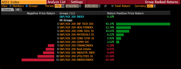 Year to date – the technology and health sector continues to lead with the tech index currently up by a whopping 43%. Despite the improvement in the energy market over the past few weeks, the index is still standing as the worst-performing sector given the fundamental uncertainties.