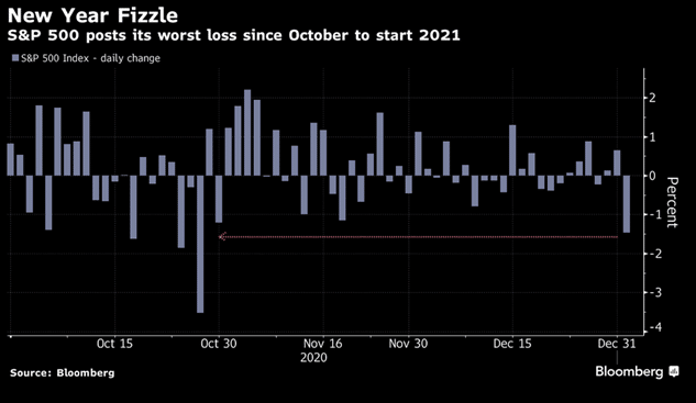 Wall Street ended in the red dragged by virus woes and runoff elections. Major US equity indices erased more than 1% on the first trading day of the new year: