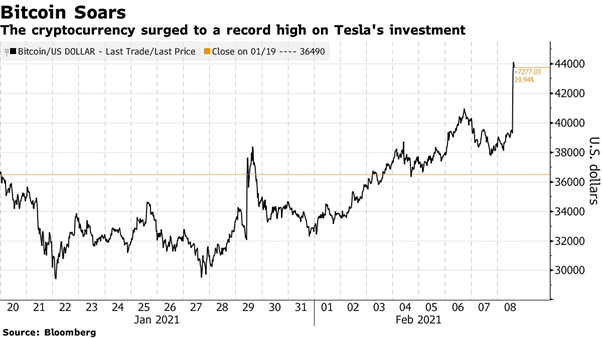This came on the back of Tesla Inc. investing $1.5 billion in Bitcoin and signalling its intent to begin accepting the token as a form of payment.