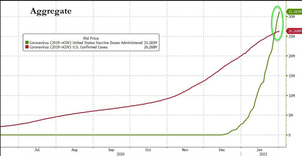 US vaccinations have picked up pace with the US administering shots at a faster daily rate than any country in the world.