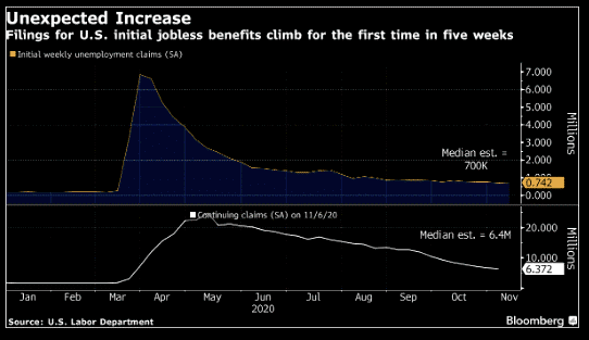On the economic front, investors digested the mixed data and the prospects of more economic grief in the coming months following more lockdowns and social distancing measures to combat the virus outbreak in the US.