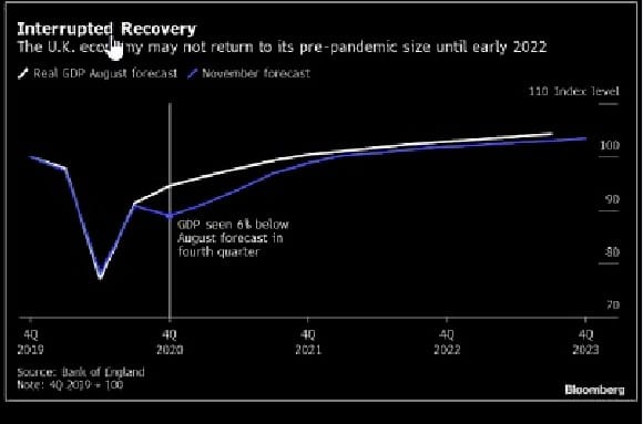 Despite the downbeat new forecasts of the economic contraction as the UK entered a one-month lockdown, the QE boost and more aid from the government announced on Thursday helped the Pound to climb higher.