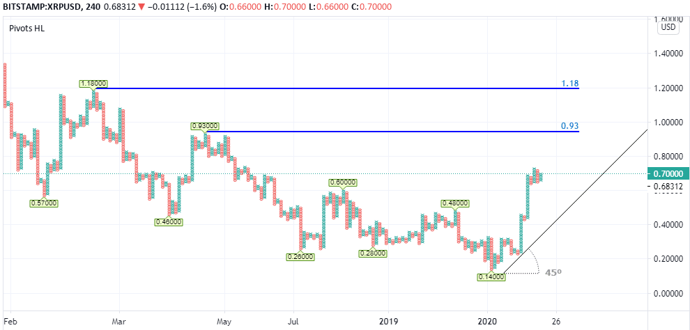 The crypto XRP has seen a sharp rise up around 200% during the past two weeks from 26 cents to a recent two year high of 90 cents.